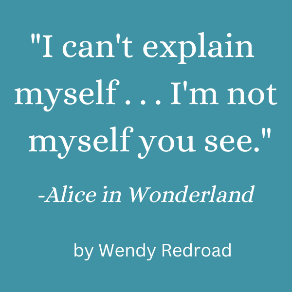 If this story ruffles your own feathers, don't despair. I have good news. You are not yourself. If by chance you've lashed out at someone in an effort to self-protect today, just like Alice, in Alice in Wonderland, you are not yourself.